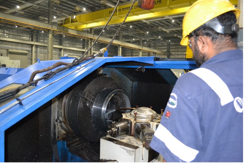 Kỹ thuật viên OMS Saudi vận hành thiết bị gia công đường kính lớn